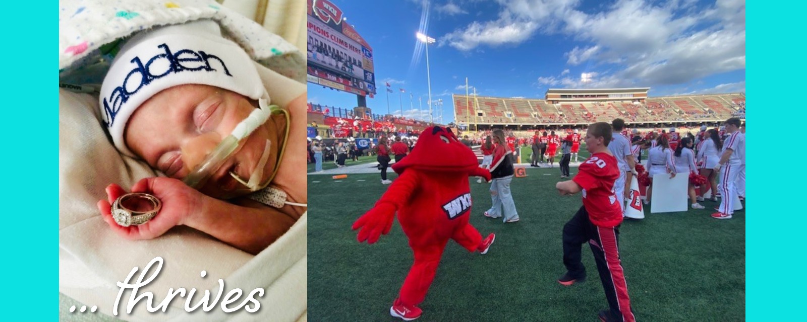 Today, those NICU struggles feel like a distant memory, as 11-year-old Madden recently stepped onto the field at Western Kentucky University in Bowling Green as a thriving fifth grader and football fan.